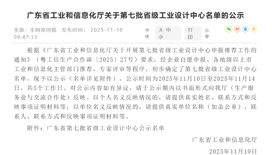 The "Provincial-level Industrial Design Center" designation is an important qualification established by Guangdong Province to strengthen the design capabilities of the manufacturing industry and promote the industry's move towards the mid-to-high end. This batch of accreditations is based on the newly revised "Accreditation Management Measures," which sets higher and stricter requirements for enterprises' investment in design and R&D, talent team building, and the transformation of innovative achievements.