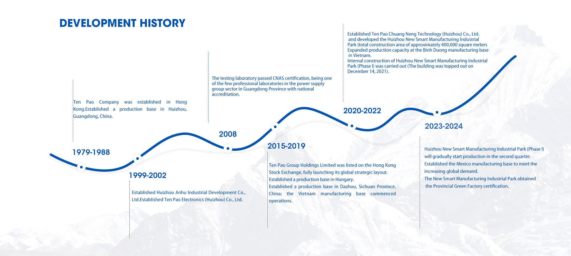 Founded in 1979 and listed on the Main Board of the HK Stock Exchange (Stock Code: 1979), Ten Pao Group has been at the forefront of the power supply industry for over 47 years. We are a world-class manufacturer dedicated to providing one-stop, smart, and reliable power solutions.